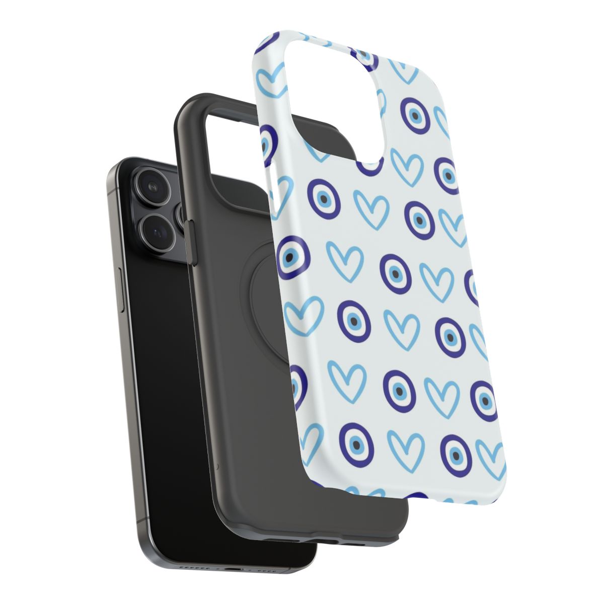 Protect your phone in style with our Evil Eye Hearts Aesthetic Phone Case. Featuring a captivating blend of mystical evil eye symbols and delicate heart designs, this case combines spiritual charm with contemporary aesthetics. Crafted for durability, it shields your device from daily wear while making a bold fashion statement. Perfect for those who embrace alternative style and appreciate meaningful symbolism. Available for most phone models.